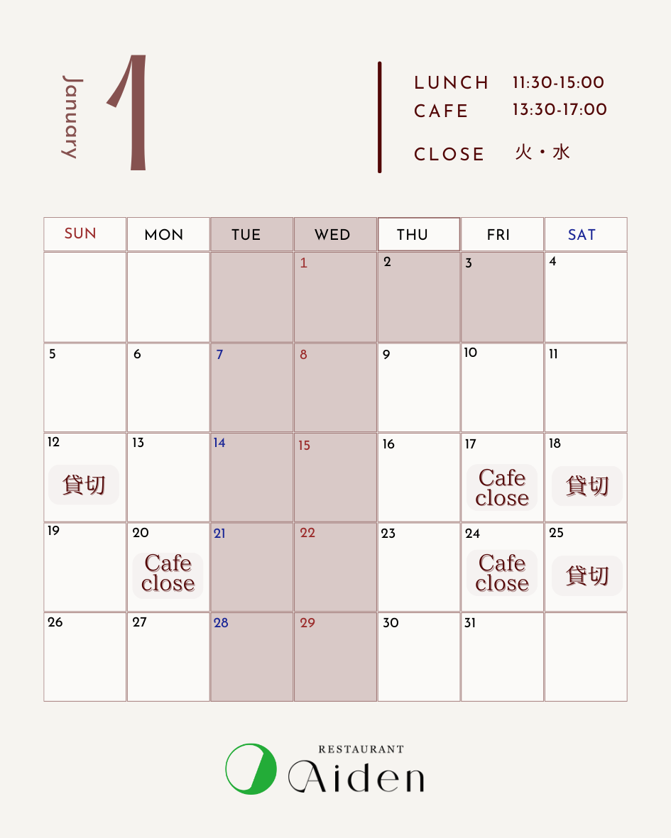 1月4日(土)~ランチ営業スタートします。